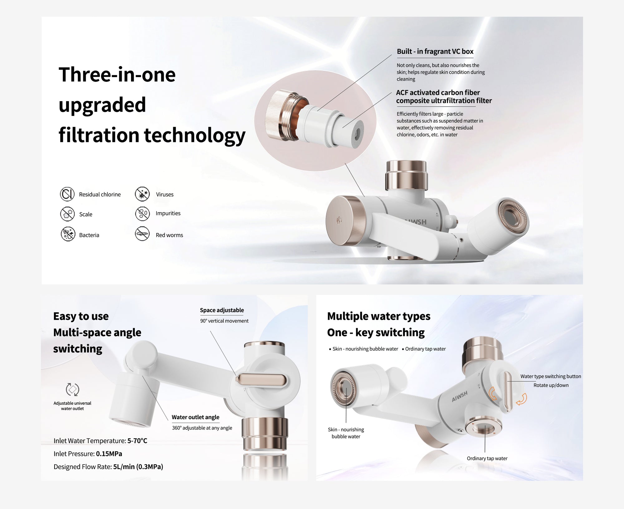 AIWSH AWS-W20 Dual-Outlet Microbubble Faucet | 2 Modes for Deep Pore & Oral Care | Skincare & Bathroom Solution