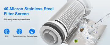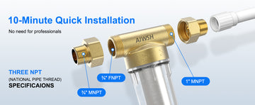 AIWSH AWS-QZ10 40-Micron Spin-Down Whole-House Sediment Filter with Reusable Cartridge & Anti-Burst, Freeze-Resistant Design
